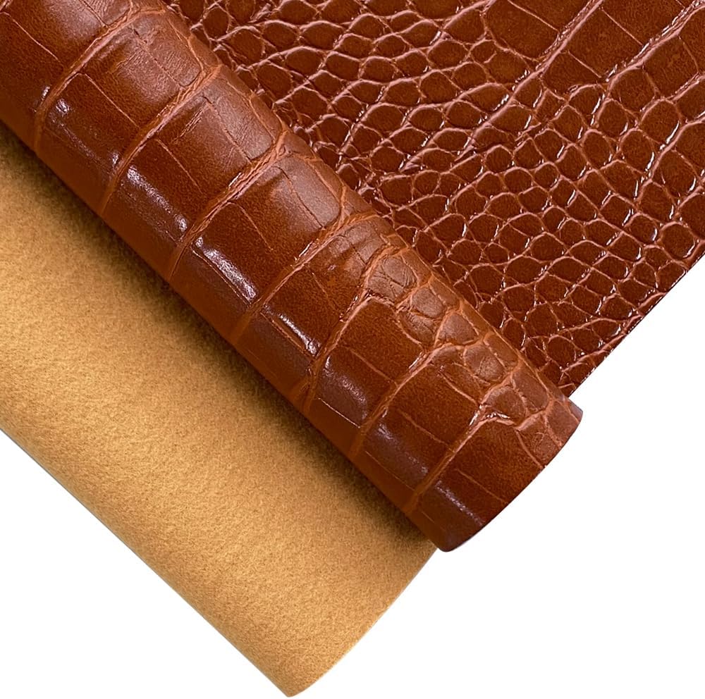 - What You Get: Glossy embossed crocodile texture faux leather roll 12"x53"(30cmx135cm), which thicknessis about 1.1-1.2mm.