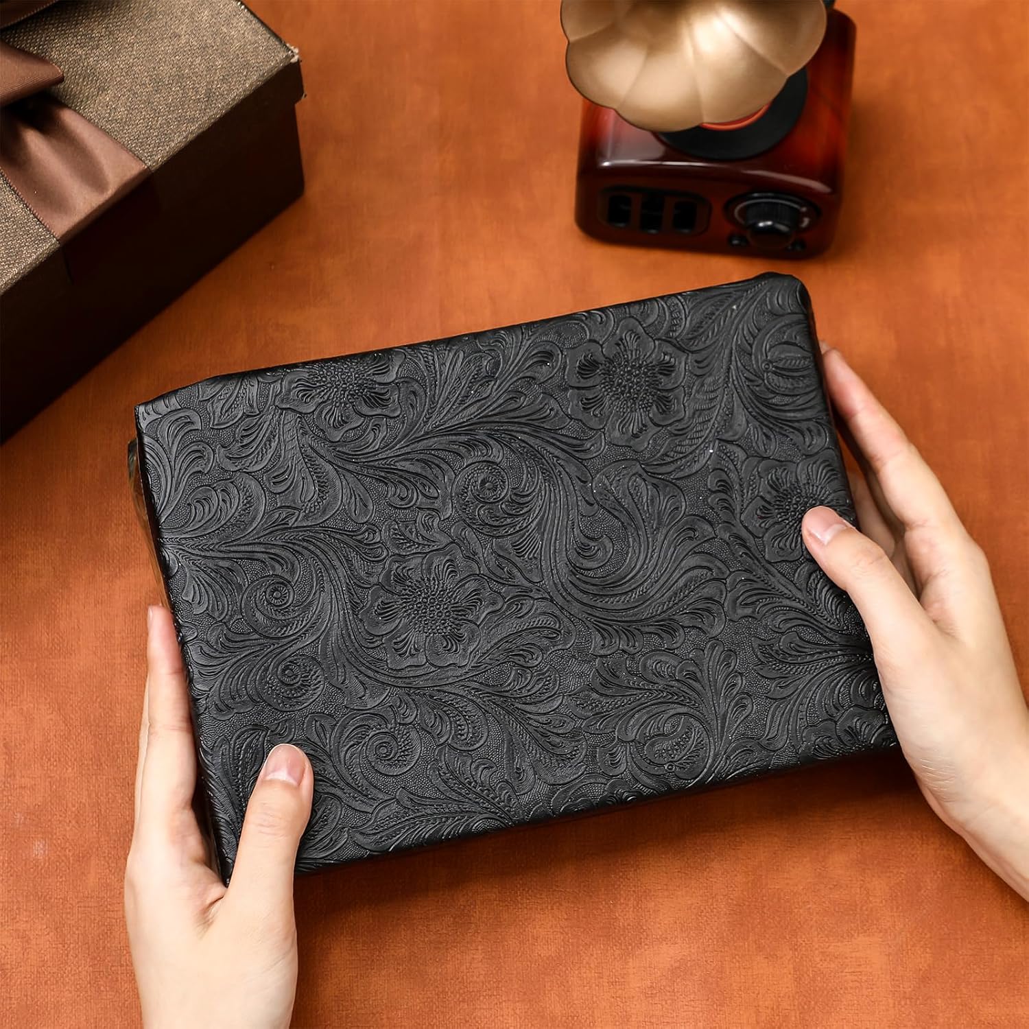 The faux tooled leather fabric is elegant and vintage, you can use them to decorate your home, office, shop, bar and more depending on different themes, convenient to make your place look charming and elegant.