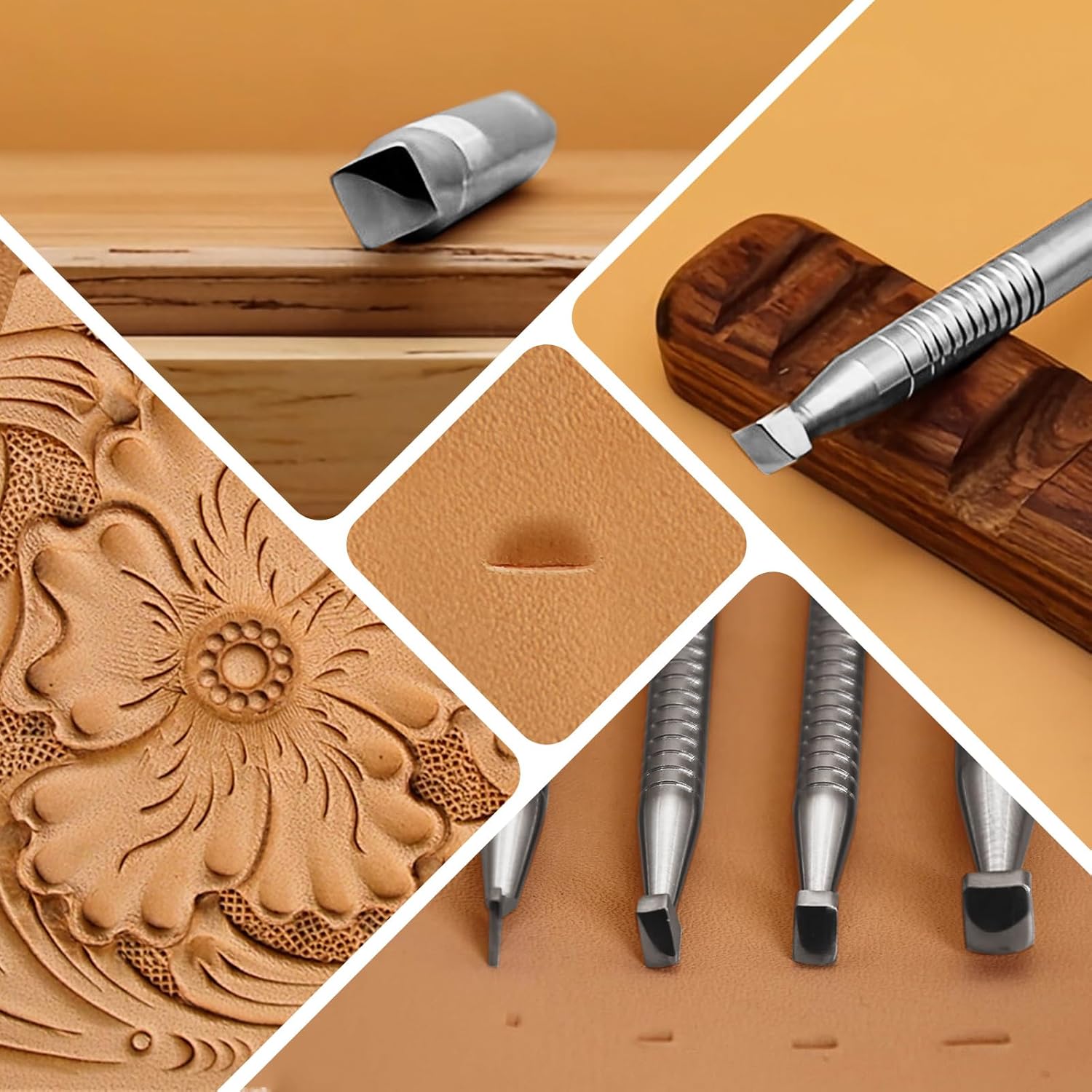 Leather Beveler Stamps Stamping Tool Smooth Beveling Set 304 Stainless Steel LeatherCraft Carving DIY Kit 4Pcs
