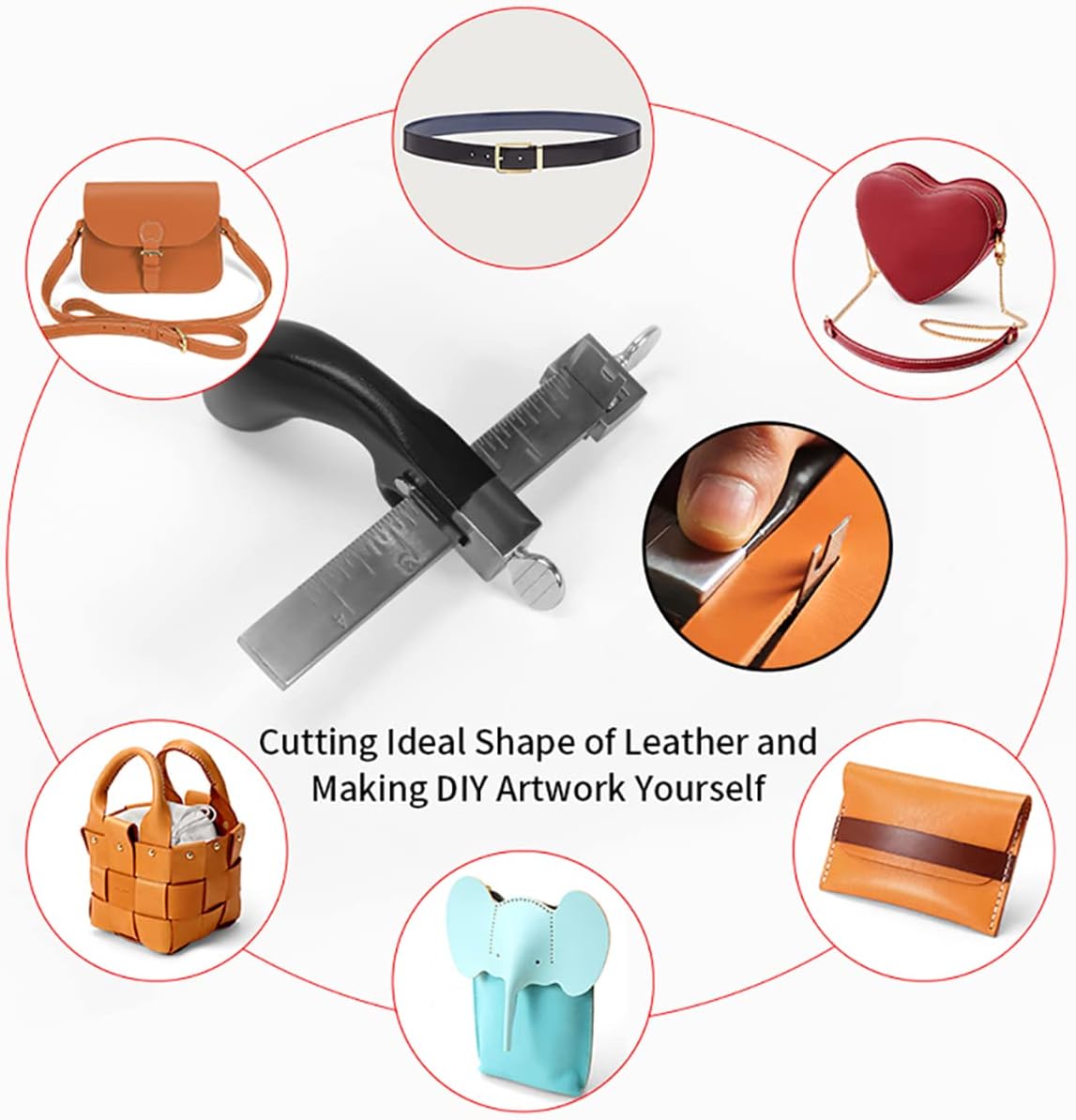 Professional Sharp Leather Strap String Belt Cutter Adjustable DIY Hand Cutting Tool with 2 Blades Craft Leather Tools